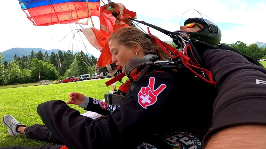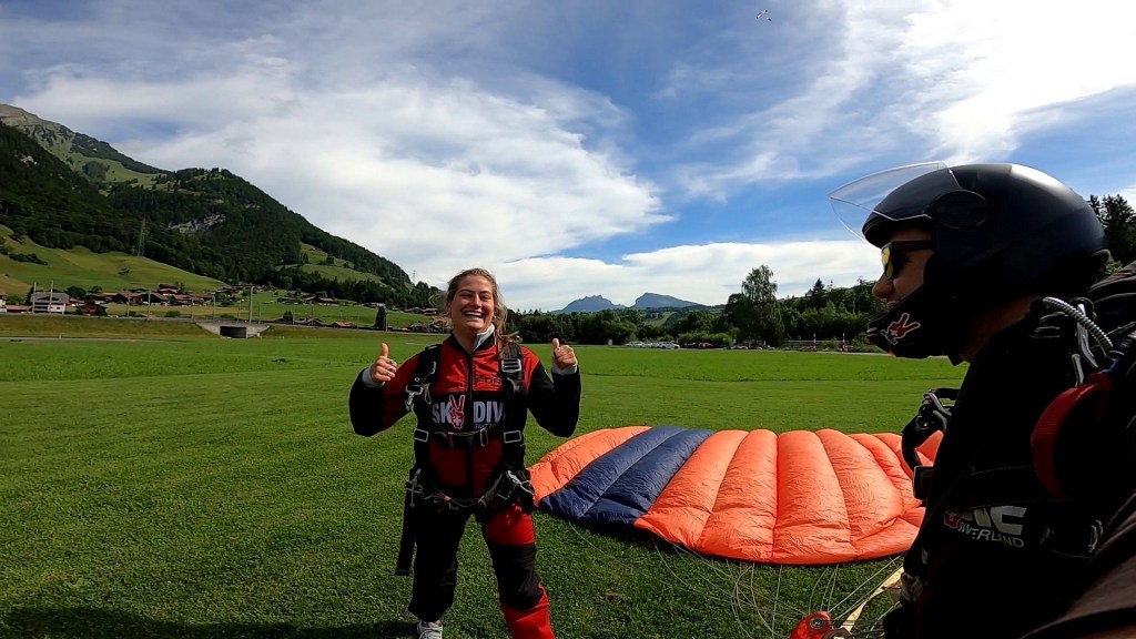 We woke up at 6:00 am to catch the 6:48 train to interlaken. Once we arrived we went to the Co-op to get a little breakfast and then waited outside at the designated pick-up location. Around 8:10 our van had arrived and we began signing our life away and talking to our instructor about the best things to do around the area while we waited for the others. Around 8:30, everyone had shown up and away to the air field we went.