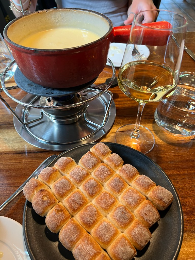 We walked around the town for a bit, found a chocolate shop and a browsed a few stores. Once it hit 7:00 we decided to see if we could go early to our 8:00 reservation. Thankfully, we were able to and we sat down for dinner. We went to the restaurant taverne in interlaken and man was it fantastic. We both just ordered cheese fondue with bread and potatoes. We both probably ate over our body weights, but every second of it was worth it!