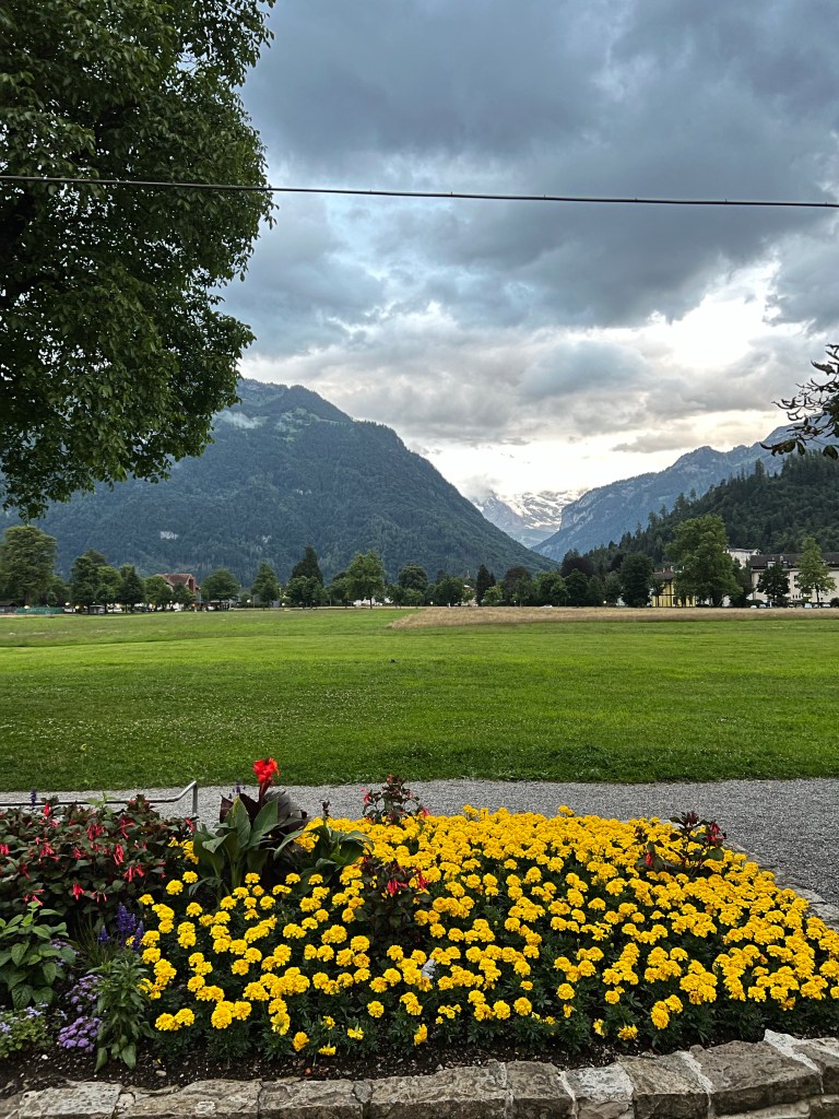 So, as I stated in my previous blog today was a large travel day to Switzerland. We took a flight from Barcelona, Spain to Basel, which was one of the scariest flights of my life. We hit a storm in the air, so had terrible turbulence and everyone was freaking out – the flight attendants were rushing back and forth down the aisle. But somehow, some way we safely touched down in Basel around 6pm and that was just the start of the journey. After our flight we had 55 minutes to catch the 6:55 train to interlaken, thankfully again, we made it. We even had a whole 10 minutes to spare. From interlaken we had 5 minutes to catch the train to Grindelwald – thankfully, again we made this one and finally arrived at our final destination at around 9pm.