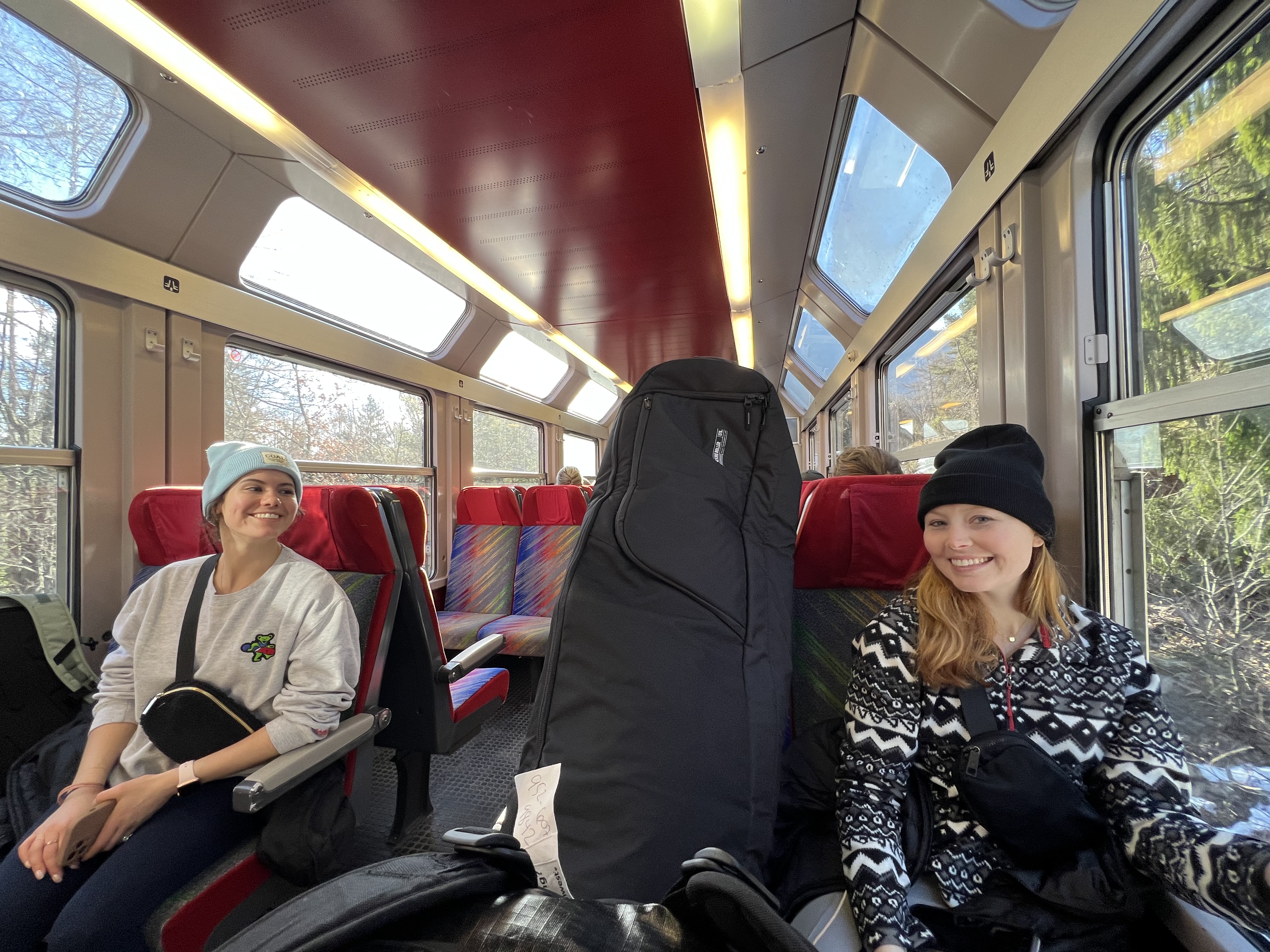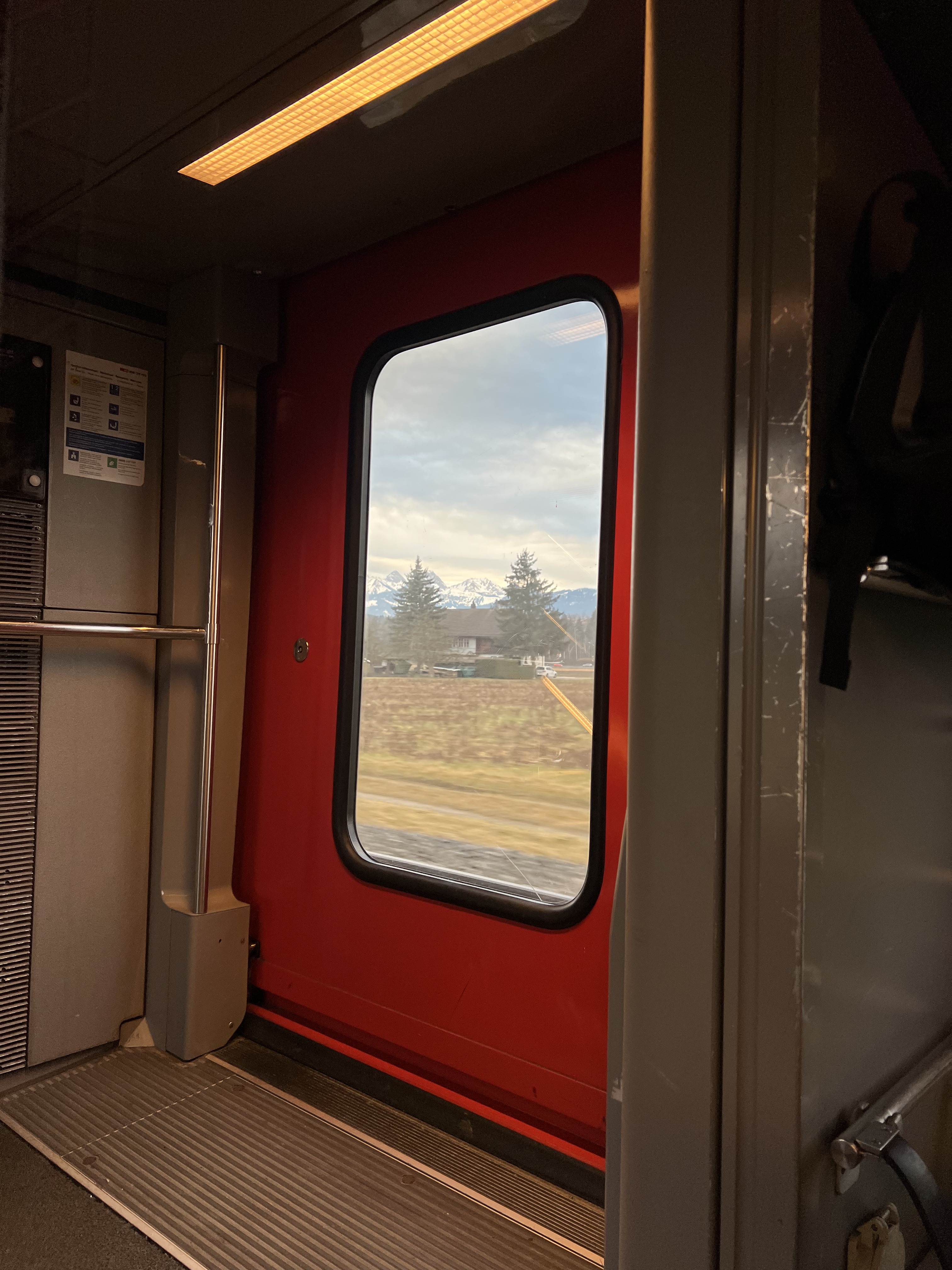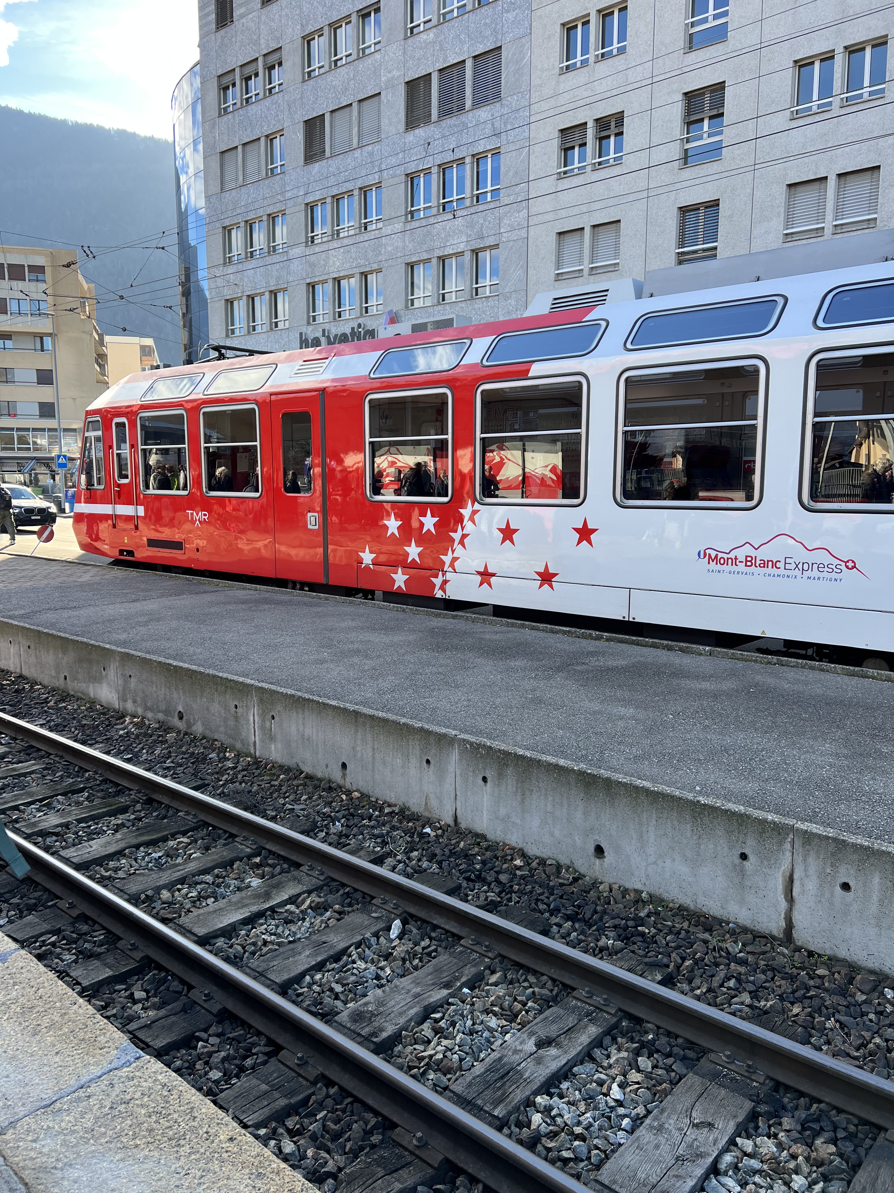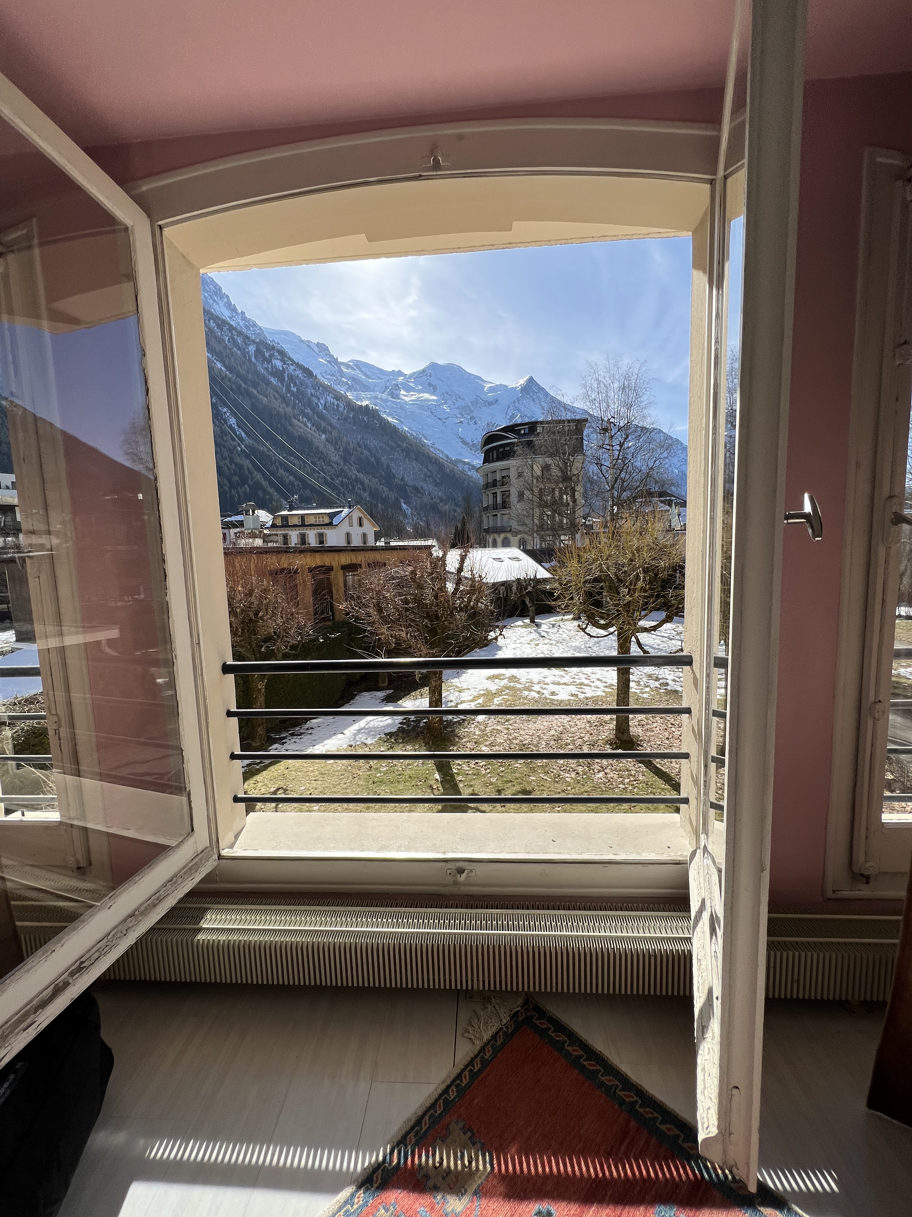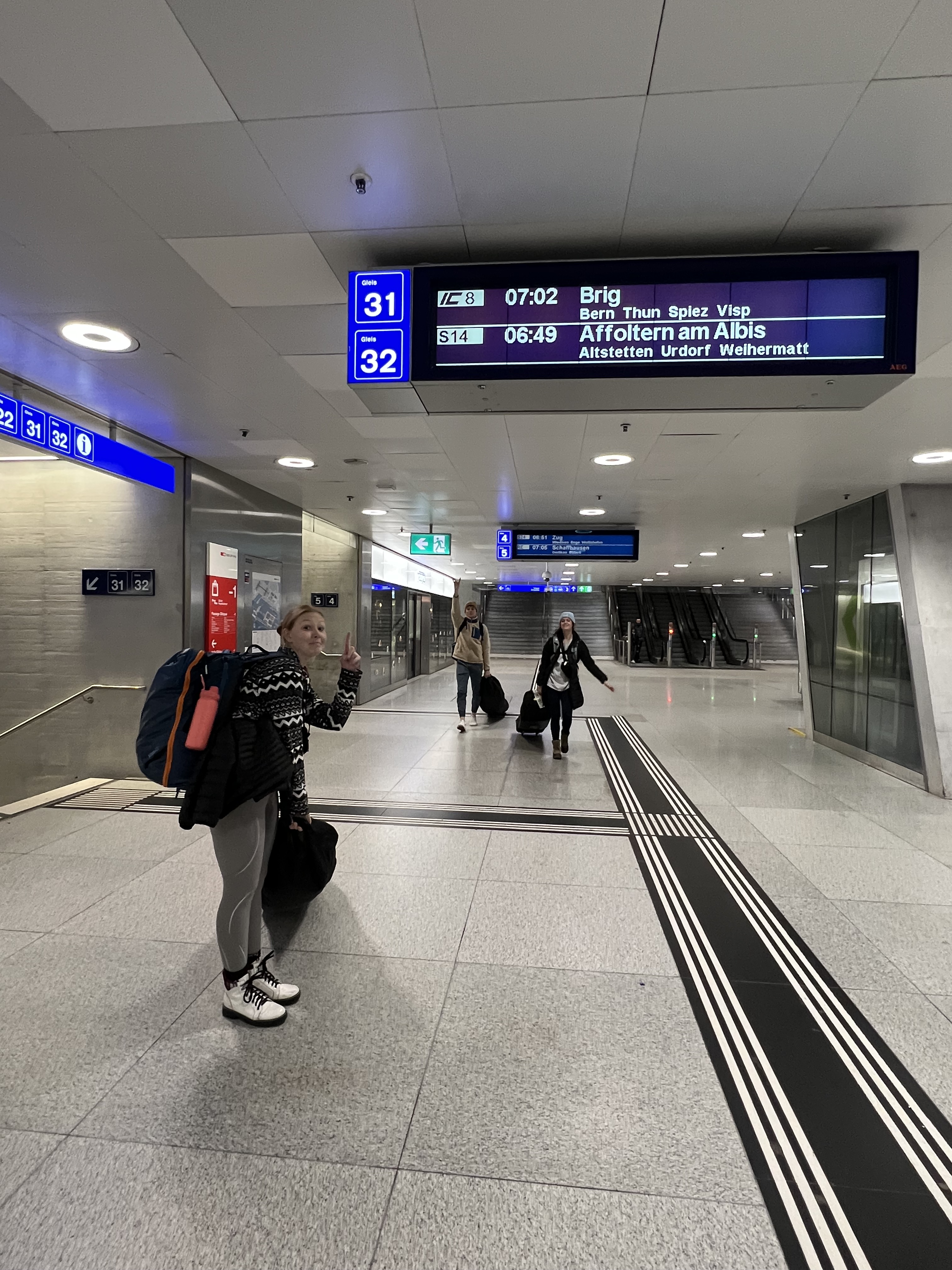 Our connections on this journey were very short (as in somewhere 8 minutes while others were a max of 15 if we made every train on our first try that was). The first train was from Zurich to Visp and the longest train on our journey at right around 2 hours. The first connect was 4 minutes, causing a bit a stress because we had to get our ski bags (while besides mine cause #itwaslost) off the train, find the right platform, and get back on the next train all within that 4-minute time span. Luckily, the train station only had 6 platforms so we were able to successfully complete the first transfer. The next train was quick at around 40 minutes from Visp to Martigny. This train, we spent the majority of the trip staring out into the beautiful Swiss valley and taking in all the views. The next connection wasn’t quite as stressful because we had 15 minutes and the train arrived earlier, so we ended up with 20. The train station in Martingny also only had 4 platforms, so it was a very easy transfer. We got off the train found a convenience store, and got some baguettes, croissants, and coffee before heading to the next platform to hop on our third train of the trip. The third train was also about an hour long. This train we spent the entire time staring out the window at the amazing mountain views. They were beautiful and the train practically went straight up the mountain. Sadly, our train was running late, so we missed our next 2-minute transfer and had to wait an hour in Vallorcine for the last train to come. We explored outside a little, however, since most of us had our ski bags we didn’t travel very far as we didn’t want to miss the next train and wait another hour. After an hour of waiting, we got on the final train to Chamonix Mont-Blanc. On this train the sights were immaculate and we were all in ahh so excited for what the next night entailed.