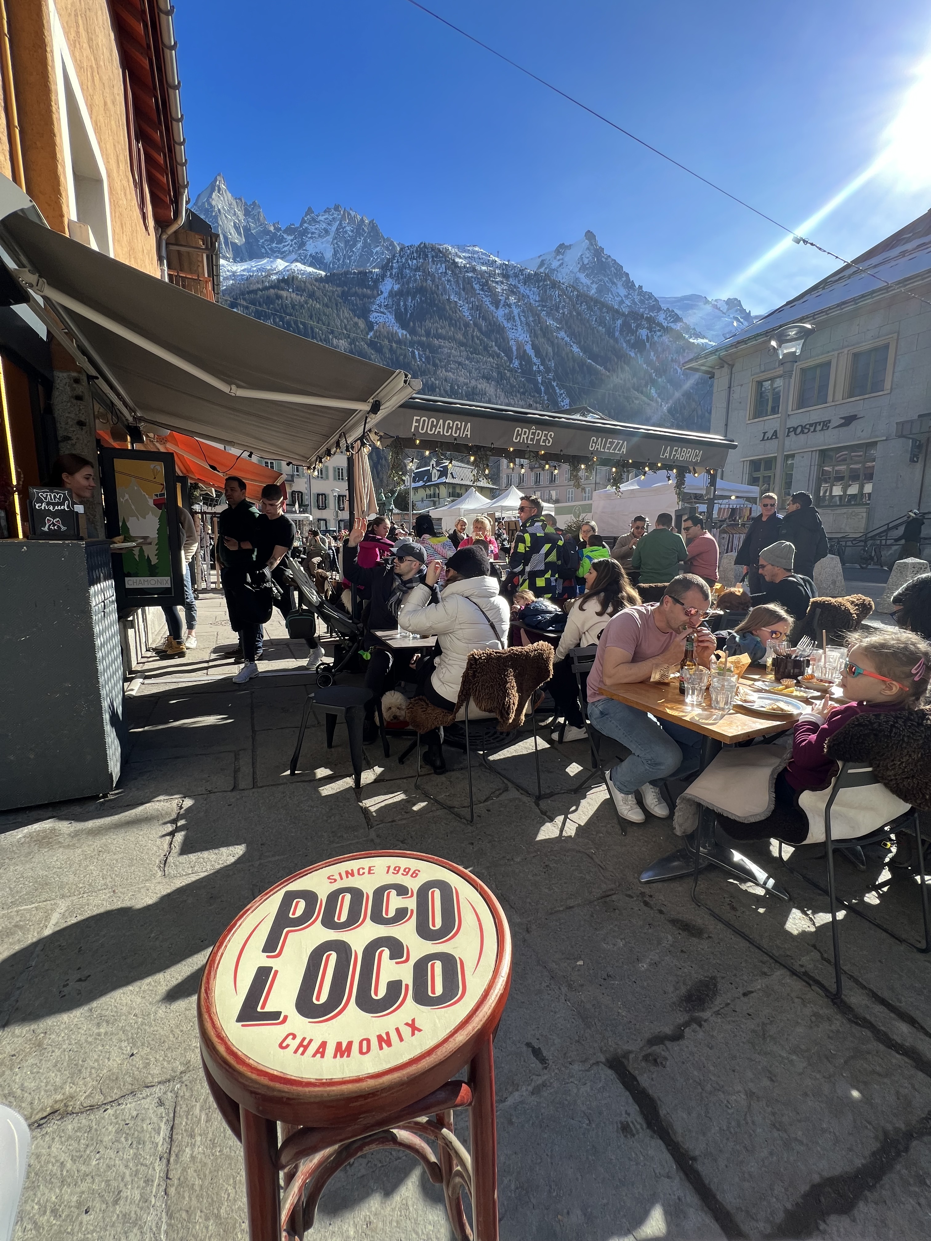 We ended up arriving in Chamonix Mont-Blanc around lunchtime. We made our way to the Airbnb to check-in before making our way to venture and explore the town. The Airbnb host was amazing and the place had the best view of Mont-Blanc. After scouting out the Airbnb, we went to find some lunch. We ended up at the best little sandwich shop right in the center of town. We all ordered the Caprese Sandwich and of course, a beer to recover from the long day of travels.