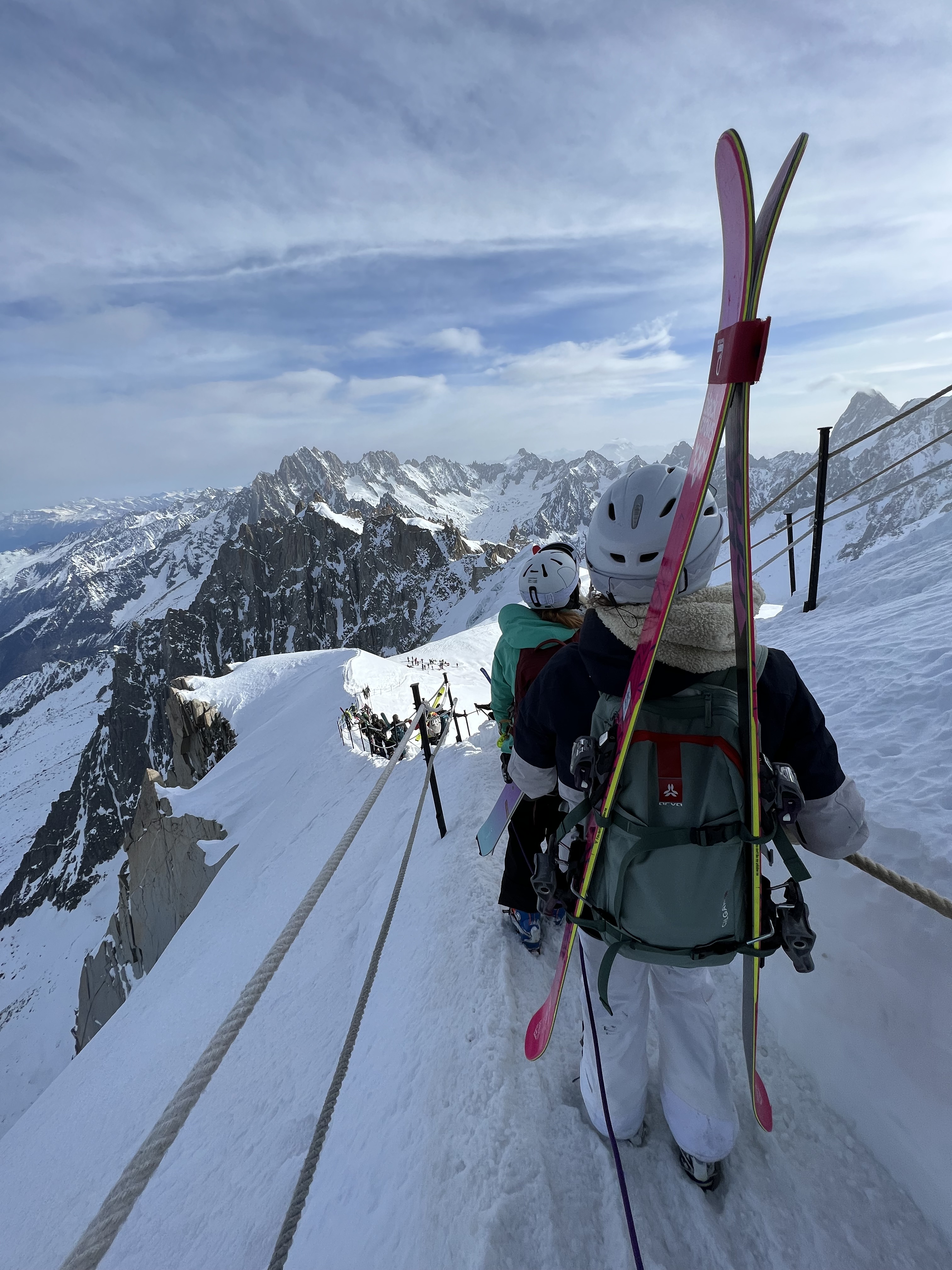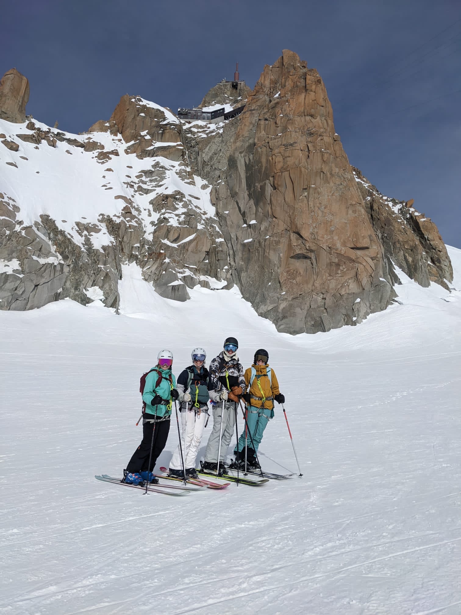 When we arrived we looked for our man, John, at the base to load us up with the required gear (crampons, avalanche gear, and harness). Once we all had our own gear we got on the L’Aiguille du Midi to take us up to the top of the mountain.