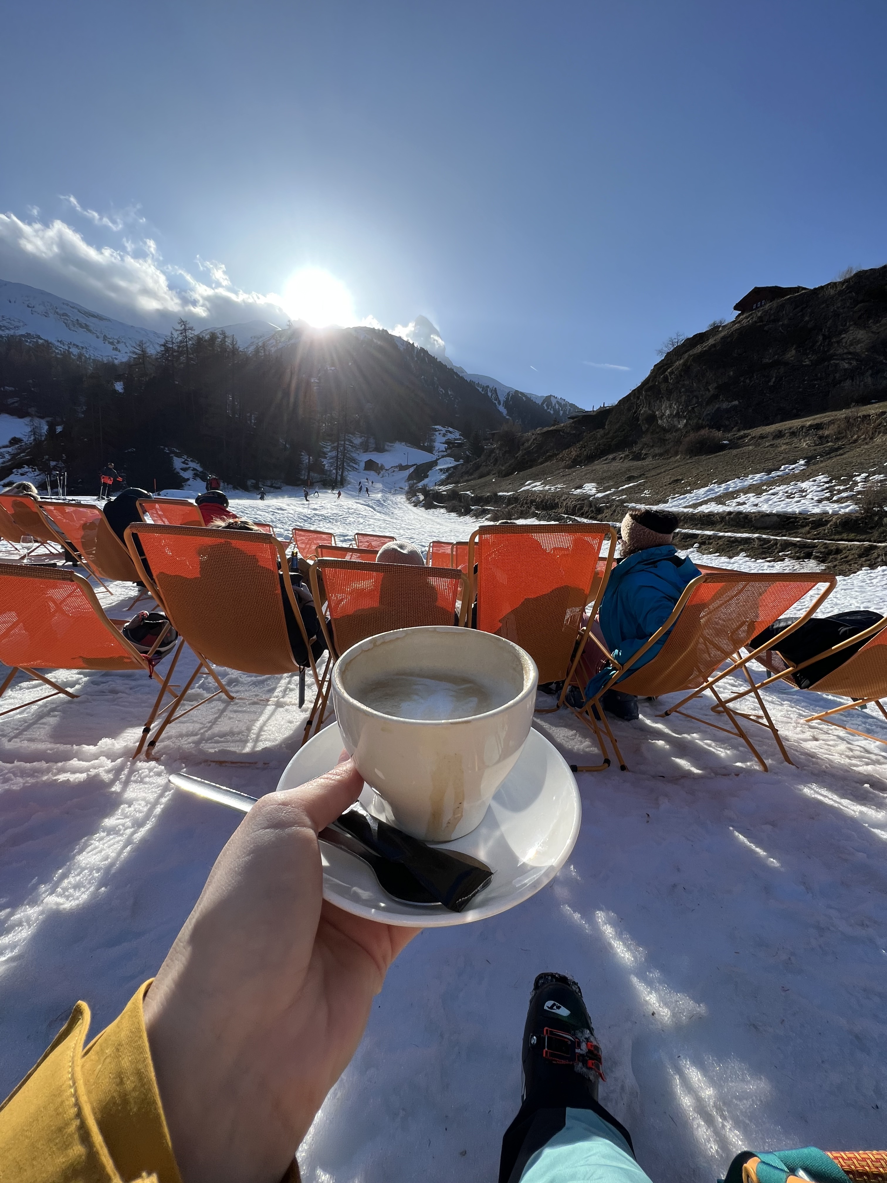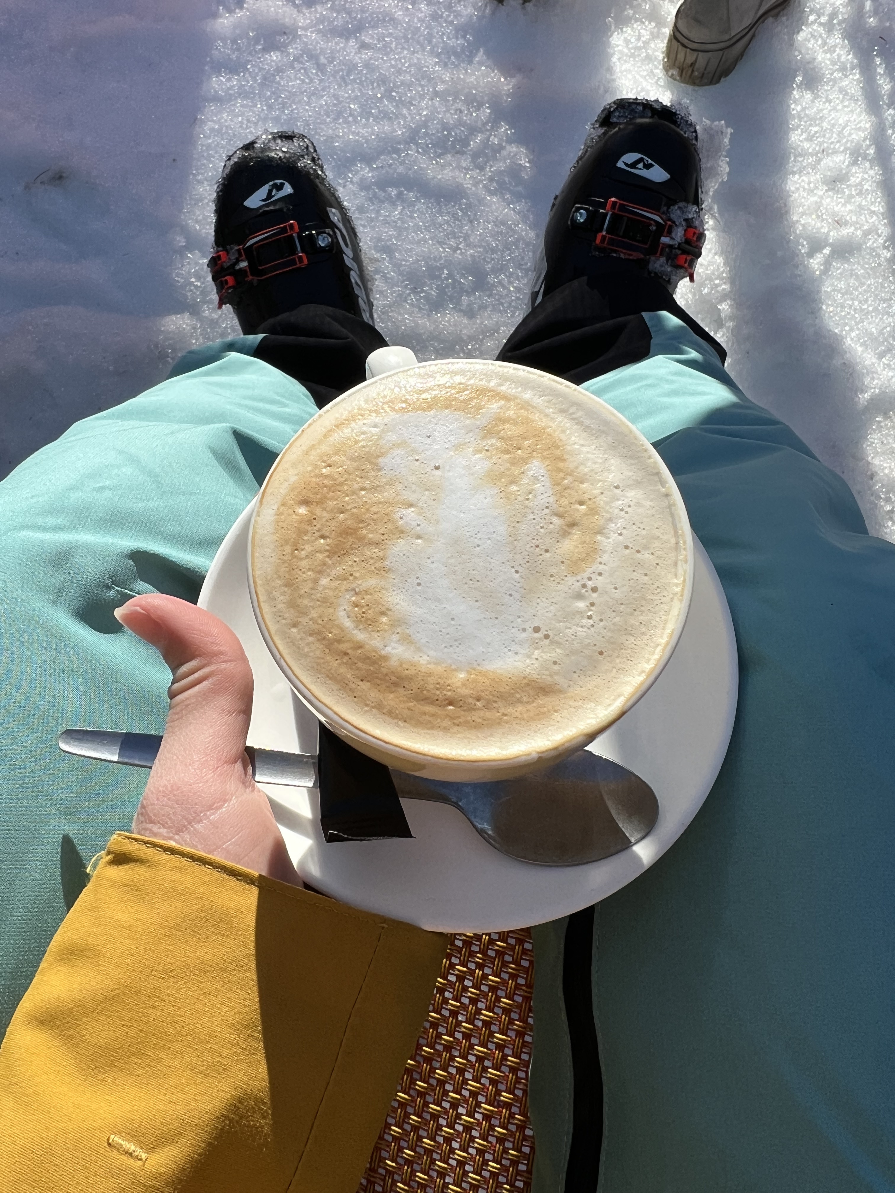We went skiing a bit more and found some unreal runs with Powder. After some fun long runs, we headed to get Apres coffee on the hill. We had an amazing view, met some fun people and sipped on our coffee.