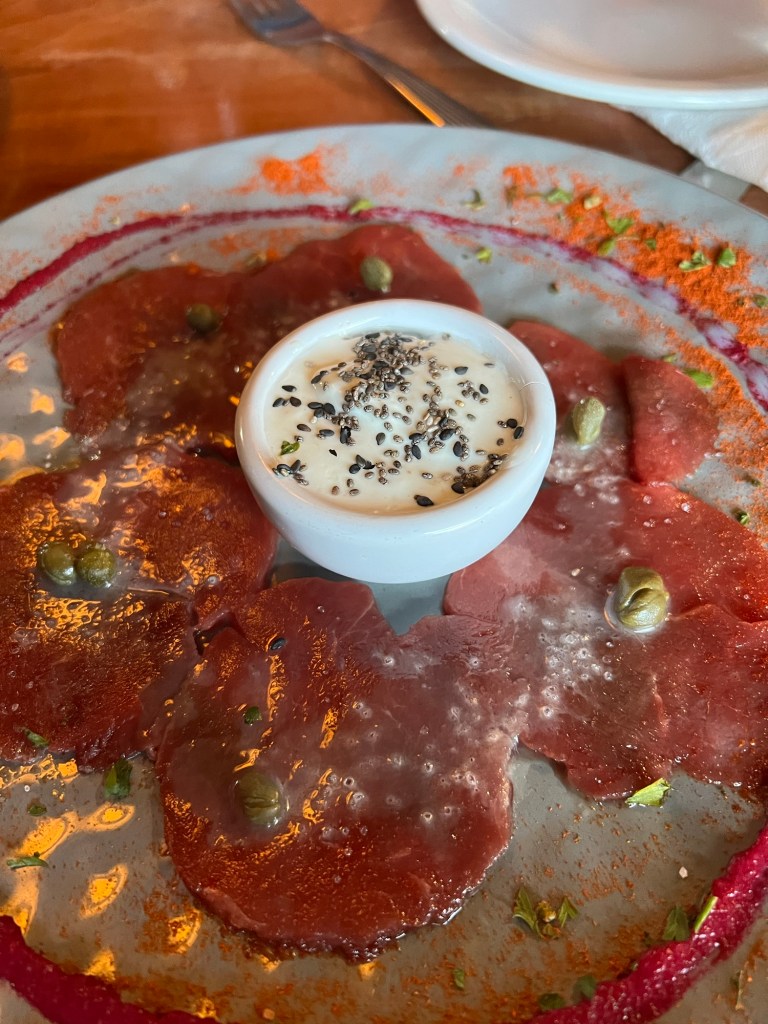 Katherine and I also ordered the local animal of town (the Guanaco – looks kind of like a llama). We were excited to adventure out and try this new type of meat as it was only offered in Restaurants and not in any stores around town. It turns out the way we ordered it was completely raw (not great for the program). I personally did end up trying it and was not a huge fan. We felt bad leaving most of it there, so took half and crumbled it into a napkin to throw away. (Oops!)