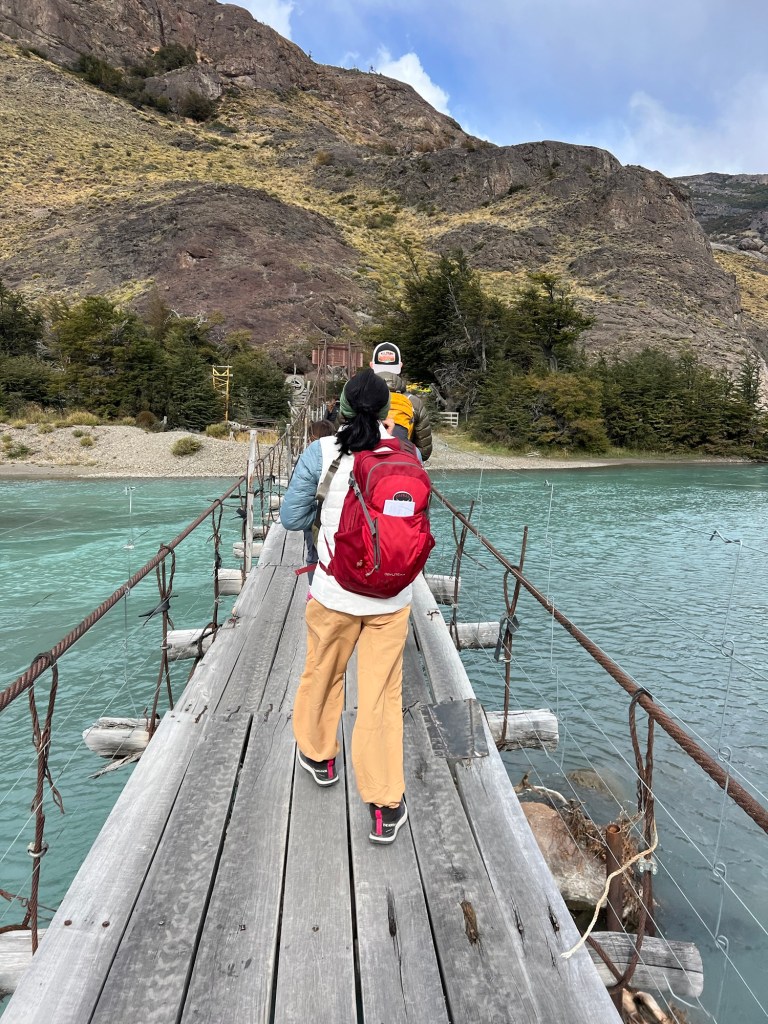 We waited around 10 minutes for the bus to show up to take us to the ranch (Estancia). We drove around 20 minutes outside of town to the gorgeous Estancia. We parked and had to a bridge across the river to officially get to the ranch. It was super windy, so the bridge was a bit of a challenge to walk across (for sure an experience of its own).