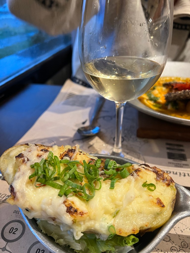 Once we got back to went back to the hotel to change and figure out the rest of our game plan since it was a bit windy and super cloudy. Before further plans, we decided to go back to the delicious lunch spot from the day before to get some Empandas. We each ordered two empanadas and the place was busy, so we decided to eat outside. The worker thought we were crazy and were going to get blown away. It was not bad, but then started to rain so headed back inside to a table that opened up. We finished our lunch and decided on an official next plan.