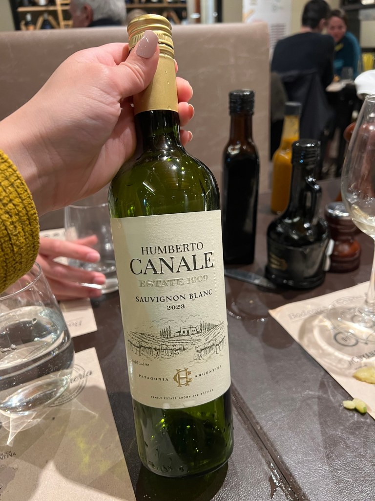 Once we finished our drinks we went back to meet up with Katherine and head to dinner. We had a reservation for La Vinera at 7pm which had the typical Argentinian food. Katherine & I split a steak and Ashley got a pasta. We both agreed that the steak was the best steak of the trip a solid (9/10 and maybe even a 10/10 steak). We also got a bottle of white wine from the Patagonia region which was a great bottle.