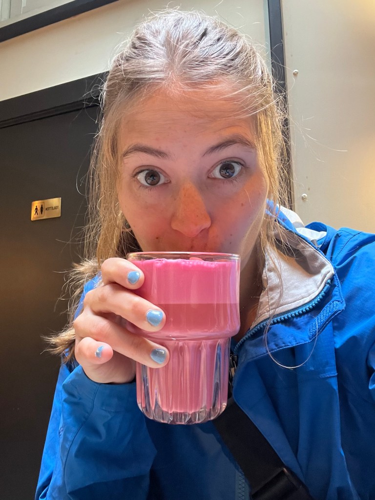 We all ordered coffee, C&A ordered flat whites, J&E ordered Espressos, and I ordered a red velvet latte. It came bright pink and was actually very good. We sat, chatted, and drank our coffees while the rained slowed before we continued on our way around to explore the city.
