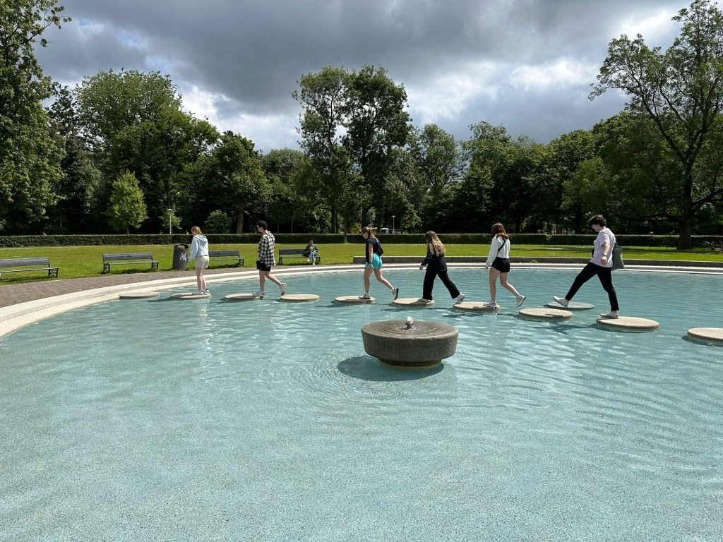 Today was the day we were going from Amsterdam to Madrid. We woke up around 9am and headed off to breakfast. Today was the day we had planned to go get pancakes and then walk around the Amsterdam park. The pancake club was about a 30 minute walk from our hotel. We walked and enjoyed the last few views of the canals before ending up at the pancake place to eat breakfast. We got some coffees as well as most of us split pancakes (some sweet and some savory).