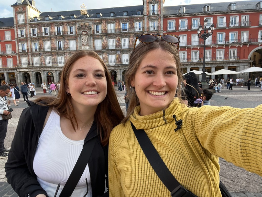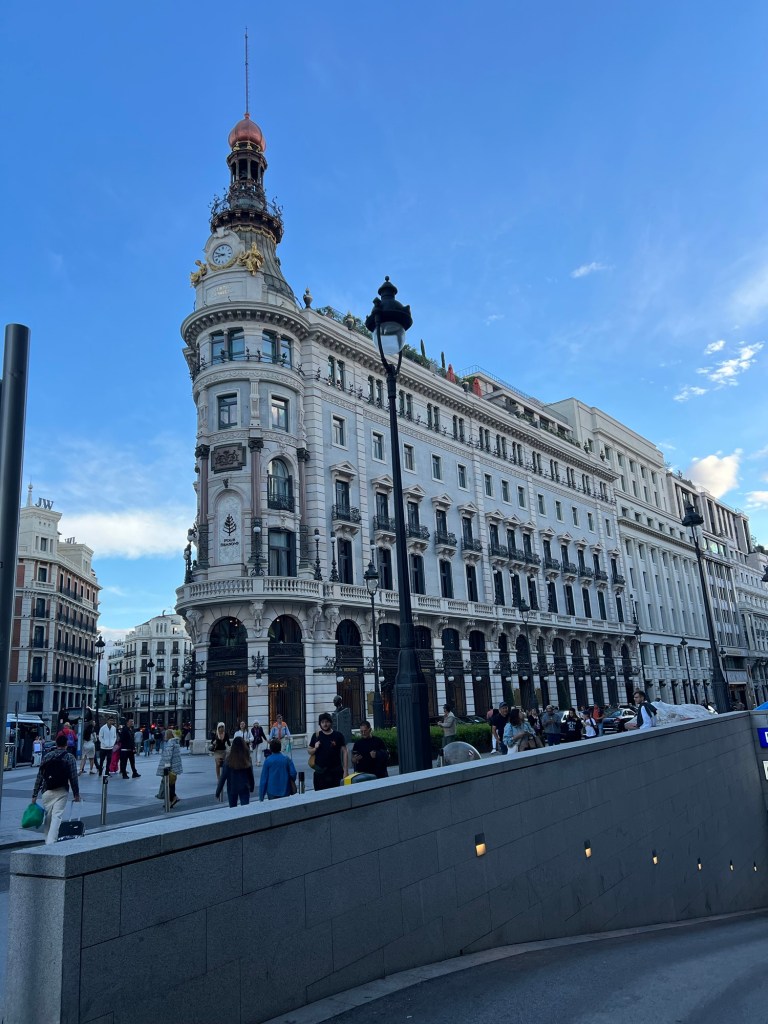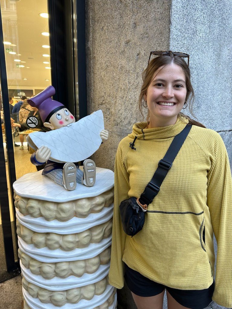 After finishing walking through the castle we made our way back to the city of Madrid to explore. We started at the Royal Post Office and made our way through the city seeing the Plaza Mayor, Plaza de Cibeles, La Paz, and some very fun shops. The Plaza Mayor is a beautiful area of the city with buildings surrounding you it feels as though you are almost in a movie. There were people feeding the birds and there was a lot of activities happening overall. Plaza de Cibeles is in the center of a large roundabout in Madrid, so we looked at it from a distance before contining on our way.