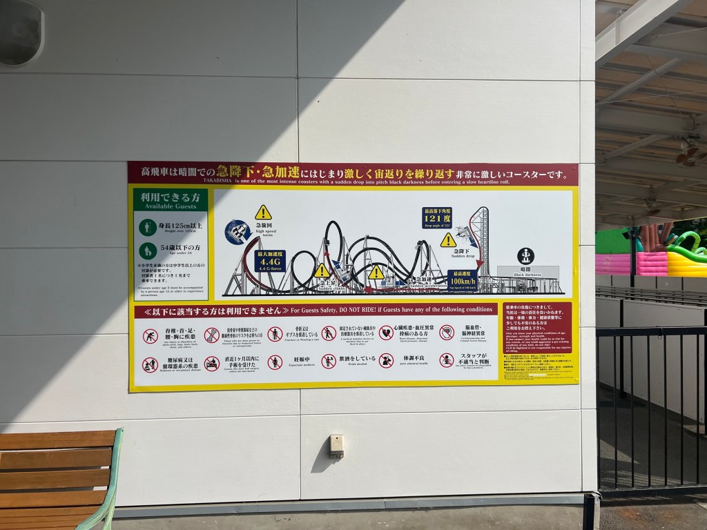 We parked at the hotel, attempted to check-in which we were not allowed to, and headed to the amusement park. The Park seemed completely empty when looking in from the outside. We got a half day ticket as it was already 2pm and the park closed at 5pm. When we arrived we realize that the amusement park was actually quite famous. It had the 4th fastest roller coaster in the world as well as a roller coaster that had the Guinness world record for the Steepest roller coaster in 2011 – Takabisha (the record has since been beat). This coaster included a 141 feet free fall at 121 degrees. The fastest coaster was sadly closed for maintenance on the day we were there.